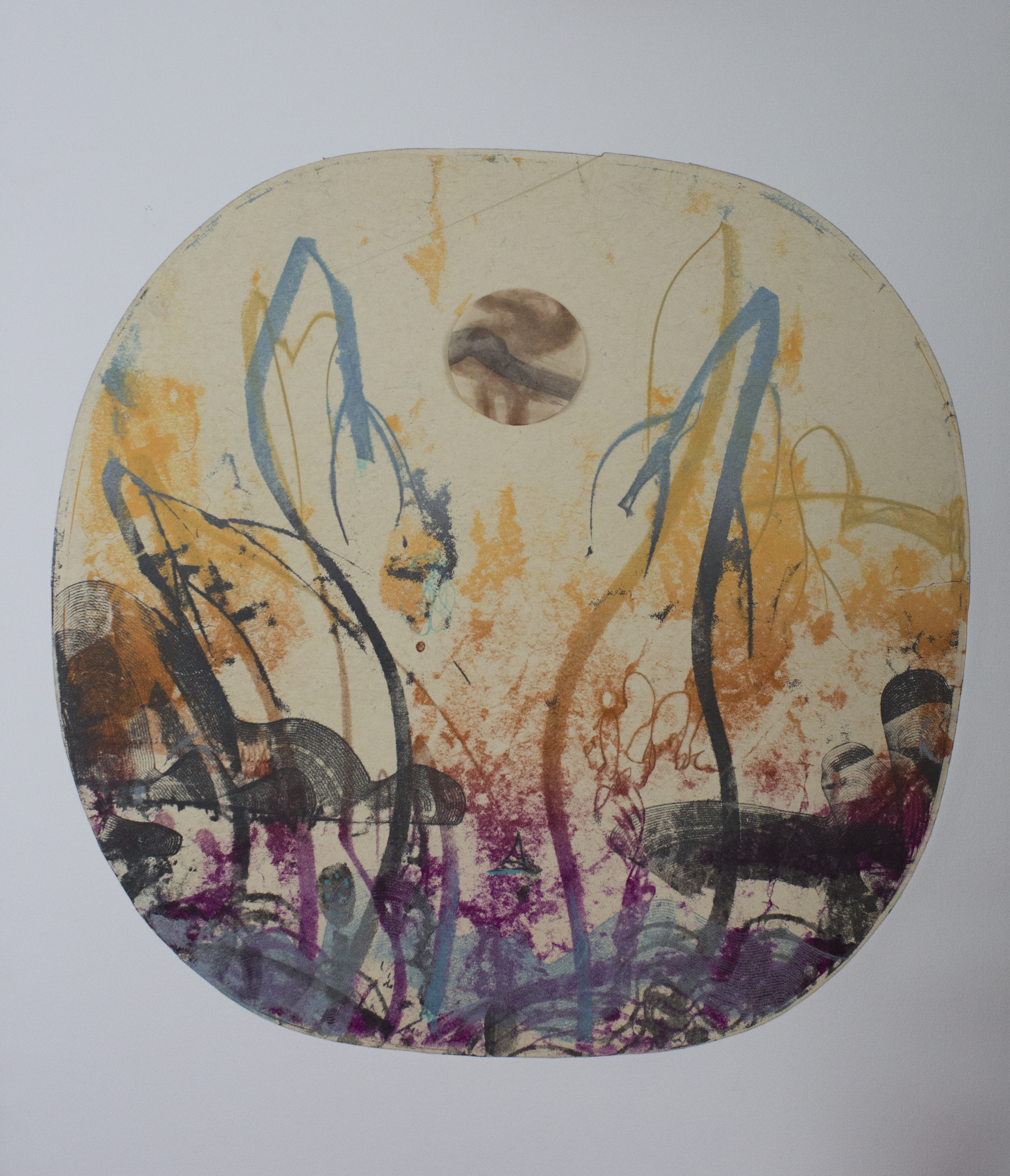 Blue Moon Series #1, Monotype and Chine Colle, 30×22, 2019