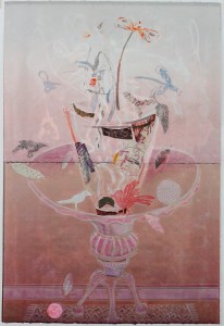 Hanging Lanterns, ’13, 41.5″X29.5″, Monotype with chine collé, Award New Haven Paint & Clay
