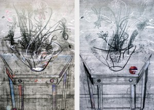 Ghost Table With Vase, ’15, 45×30, Monotype, 2015, SOLD