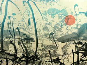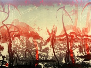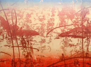 Red Dawn Song, ’13, 24″x31″, Monotype with chine collé